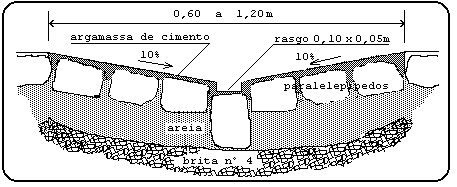 Sarjetões - canal de seção triangular situado nos pontos baixos ou nos encontros dos leitos viários das vias públicas, destinados a conectar sarjetas ou encaminhar efluentes destas para os pontos de coleta.